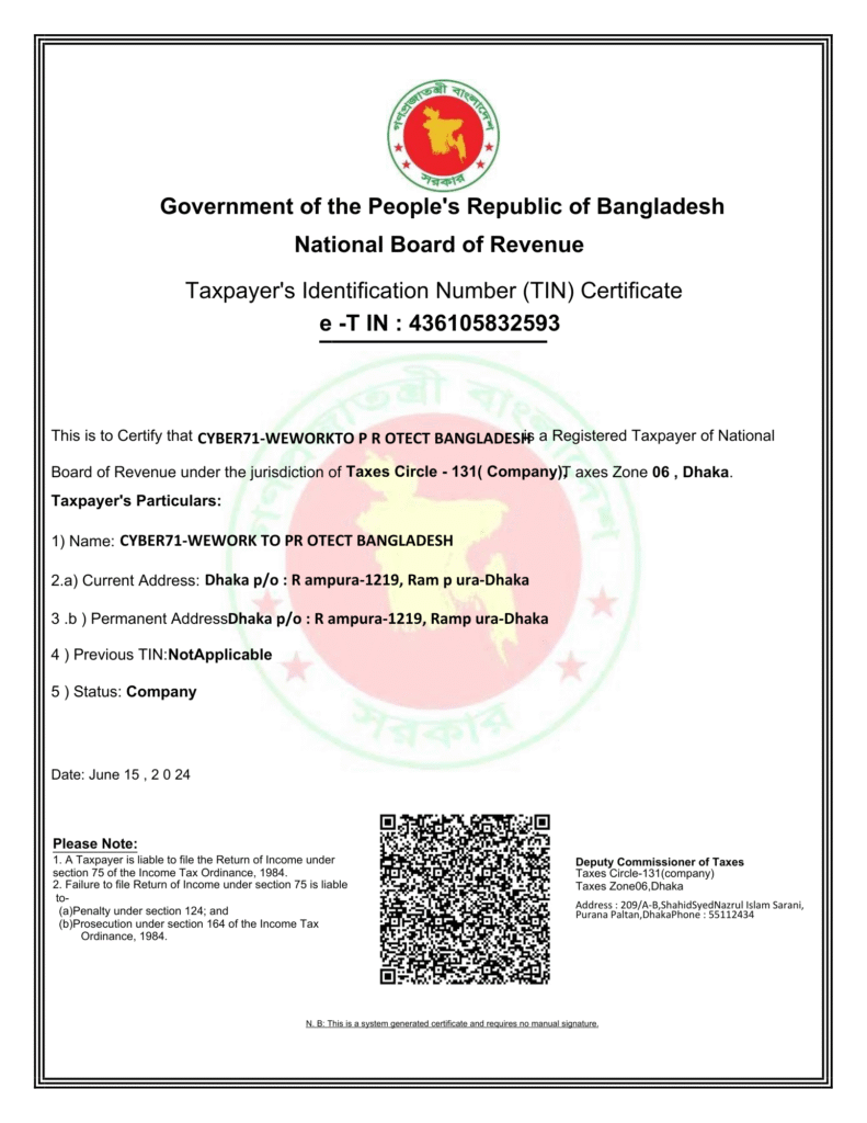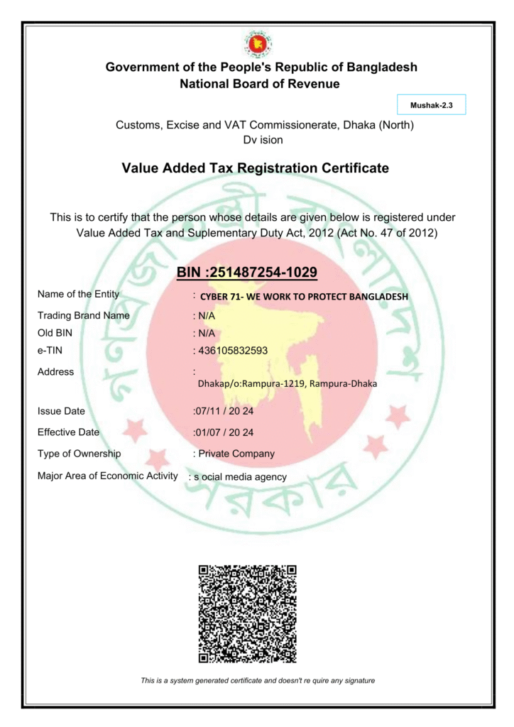 Legal Business Name: Cyber71 - We Work to Protect Bangladesh